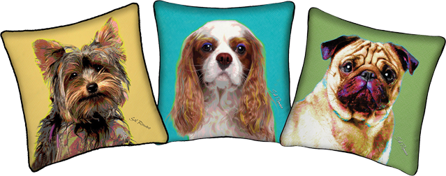 Our throw pillows have unique art that is individually produced. We also support no-kill shelters through donations to help dogs get adopted. Please submit pictures of your pets to be featured in our gallery. Even better if they are pictured with their pillow.